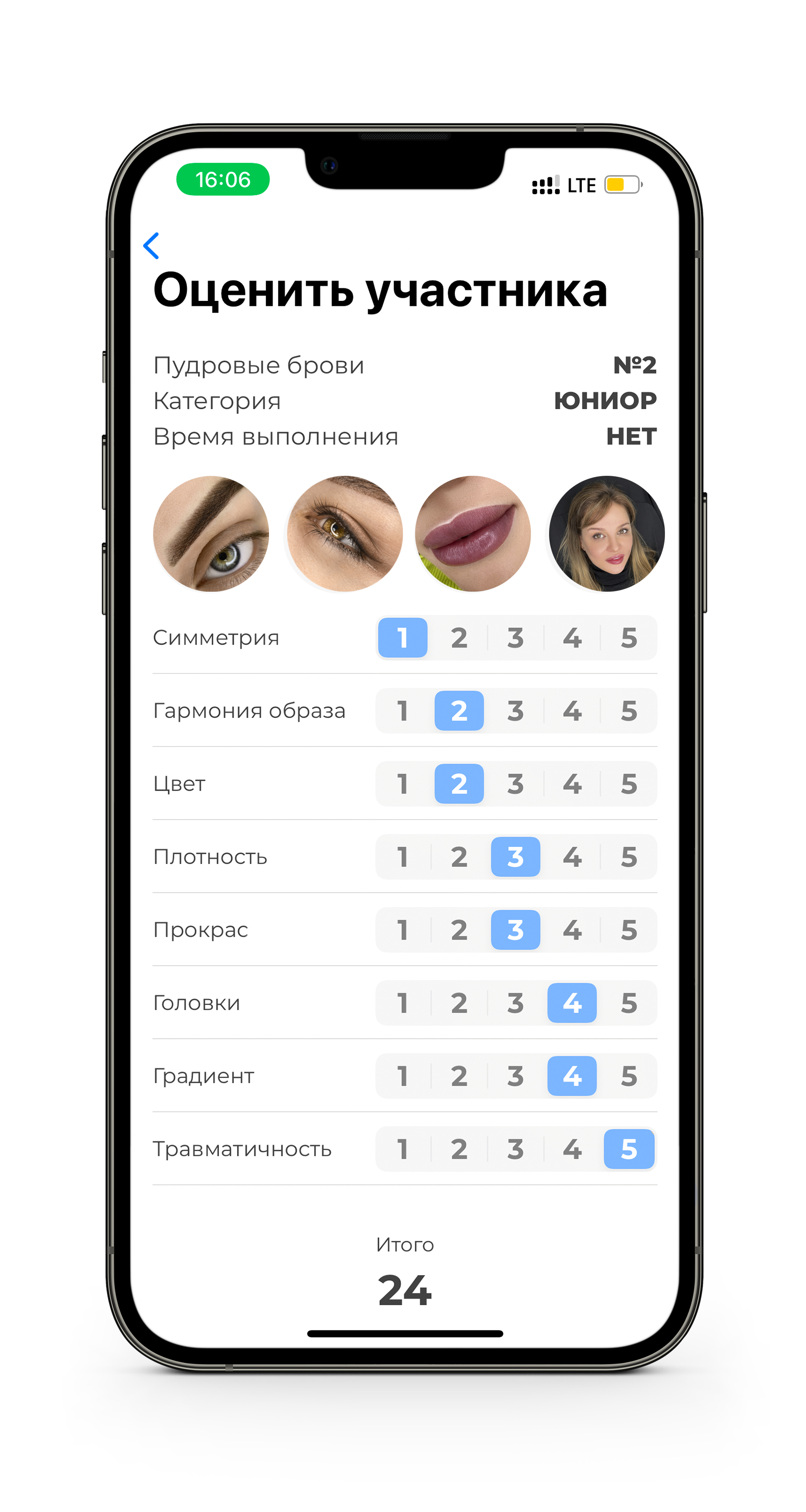 3. (ЦВЕТ) Актуальность цвета: оценивается гармоничность цвета ПМ образу модели. Гармоничность цвета оценивается здесь и сейчас, не учитывая, как предположительно пигмент заживет.